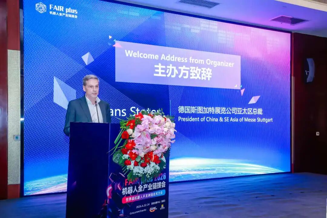 发布会现场,德国斯图加特展览亚太区总裁宋瀚思开场致辞。他指出,FAIR plus旨在打造面向全球的机器人开发技术与选型采购平台,为海内外机器人企业提供从零部件、算法模型到整机系统的全产业链对接机会。作为德国领先的专业展会运营机构,斯图加特拥有丰富的展览经验和资源网络,将为FAIR plus提供成熟的运营保障和国际推广通道,助力展会在全球范围内吸引优质技术企业与创新项目。
